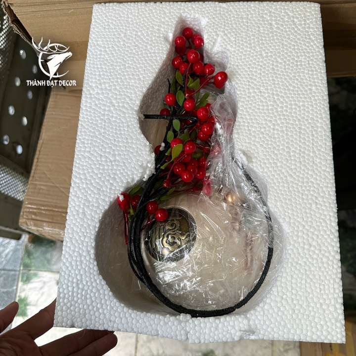 🍀 Thiết kế tinh tế:Bình được tạo hình theo dáng hồ lô truyền thống, biểu tượng của sức khỏe, bình an và trường thọ trong phong thủy. Thân bình được tô điểm bằng họa tiết dây leo, quả hồ lô nhỏ và hoa mai, thể hiện sự sinh sôi nảy nở, mang đến năng lượng tích cực cho không gian. Phần trên gắn cành quả đỏ pha lê tượng trưng cho tài lộc, may mắn và hỷ khí, giúp ngôi nhà luôn tràn đầy sinh khí.