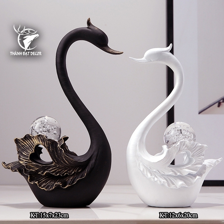 Cặp Đôi Thiên Nga Đen Trắng Hạnh Phúc May Mắn, Quà Cưới Khai Trương Sinh Nhật, Trang Trí Nhà Cửa