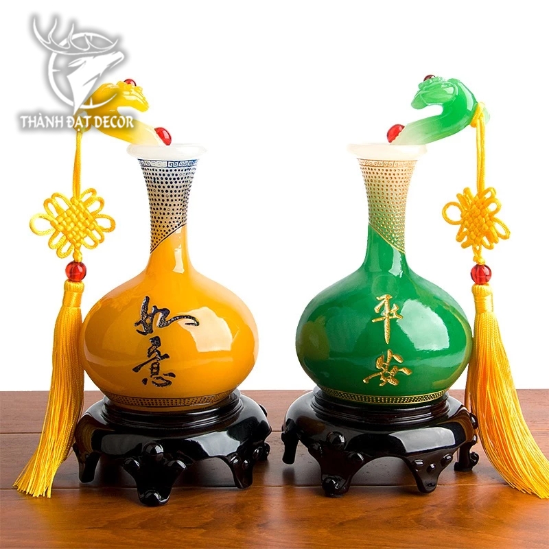 Tượng Phong Thủy, Cặp Lọ Bình An Như Ý Trang Trí Nhà Cửa , Quà Tặng Tân Gia Khai Trương Sinh Nhật⭐⭐⭐⭐⭐✅ THÔNG TIN SẢN PHẨM :✅ Chất Liệu : Polyresin Bột Đá✅ Kích Thước : Cao 22 cm, Rộng 11, Ngang 11✅ Cân nặng :1.2 Kg✅ Hình dạng: Dáng Bình đựng gậy Như Ý✅ Màu Sắc : Vàng và Xanh✅ Chữ Trên Tượng : Một mặt được khắc 2 chữ Bình An . Một mặt được khắc 2 chữ Như Ý . Trưng Lọ Bình An Như Ý trong nhà sẽ đem lại sự bình an và mọi việc như ý muốn thuận lợi cho gia đình . Ngoài ra Lọ Bình An Như Ý còn có thể làm quà tặng trong các diệp tân gia hay khai trương✅Ý nghĩa: - Cặp Lọ Bình An Như Ý là một pháp khí phong thủy giúp khai thông vận may về công danh, sự nghiệp, tài lộc. Đem đến bình an hạnh phúc cho gia chủ. Tác dụng chính của bình tài lộc là hỗ trợ gia chủ thu hút tiền tài của cải cũng như giữ gìn phúc khí, cát khí trong bình.- Trong phong thủy, những vật phẩm có phần bụng to và miệng nhỏ thường được ưa thích bởi khả năng tích tụ tài khí, giúp gia chủ không ngừng trở nên giàu có hơn nên Cặp Lọ Bình An Như Ý được thiết kế với miệng bình rộng, phần cổ nhỏ và dài dẫn xuống phía đáy bình phình to. Bình tài lộc được tin là sẽ hút tài khí rồi giữ lại ở trong bình, mang đến sự phát đạt cũng như thành công về mặt công danh cho gia chủ.- Tác dụng chính của Cặp Lọ Bình An Như Ý là hỗ trợ gia chủ thu hút tiền tài của cải cũng như giữ gìn phúc khí, cát khí trong bình. Với màu sắc rực rỡ, thiết kế độc đáo, Bình Tài Lộc chính là một lựa chọn hoàn hảo để làm quà biếu cấp trên hoặc quà tặng người thân, bạn bè, đồng nghiệp thay lời chúc phát tài phát lộc, giàu sang phú quý. ✅Cách bố trí : Nên đặt Cặp Lọ Bình An Như Ý trong phòng khách hoặc văn phòng, có thể trang trí quầy kệ. Đặc biệt tốt cho những nơi nhiều âm khí, thiếu ánh sáng. Bày cùng bàn thần tài thổ địa, trên bàn thờ cũng rất có lợi cho việc thờ cúng, bày trên bàn học sẽ tốt cho con đường sự nghiệp.====⛔Lưu ý : Khi tượng dính bụi bẩn có thể dùng vải mềm lau sạch một cách dễ dàng giữ được vẻ đẹp ban đầu. Tránh làm mất đi tác dụng của nó.👉 NHẬN ĐẶT HÀNG THEO MẪU CỦA KHÁCH HÀNG.👉 ĐƯỢC ĐỔI TRẢ HOÀN TOÀN KHÔNG MẤT PHÍ NẾU SẢN PHẨM HƯ HỎNG HOẶC KHÔNG ĐÚNG MÔ TẢ-----🏪 Thành Đạt DECOR🏢 .☎ : --------✅ SỰ HÀI LÒNG CỦA BẠN LÀ UY TÍN CỦA CHÚNG TÔI! #Tượngphongthủy#Tượng_phong_thủy#tuongphongthuy#tuong_phong_thuy#VậtPhẩmPhongThủy#Vật_Phẩm_Phong_Thủy#vatphamphongthuy#vat_pham_phong_thuy#QuàTặngTânGiaKhaiTrương#Quà_Tặng_Tân_Gia_Khai_Trương#quatangtangiakhaitruong#qua_tang_tan_gia_khai_truong#TượngTrangTrí#Tượng_Trang_Trí#tuongtrangtri#tuong_trang_tri