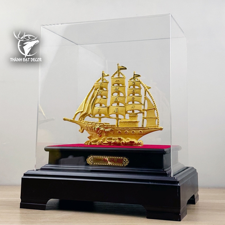 Trọn bộ bao gồm: Tượng thuyền + Đế gỗ chắc chắn + Hộp mica bảo vệ