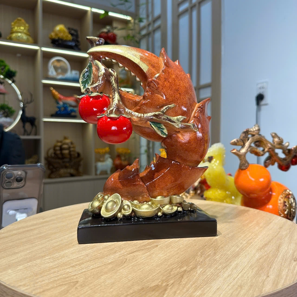 Tượng càng cua kẹp 2 quả hồng 18x11x27cm – bột đá thạch anh đúc cao cấp, trang trí phong thủy tài lộc