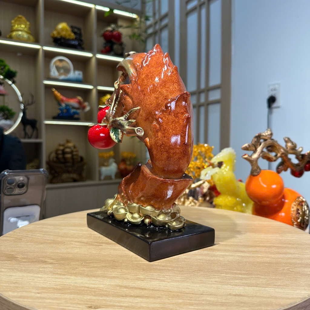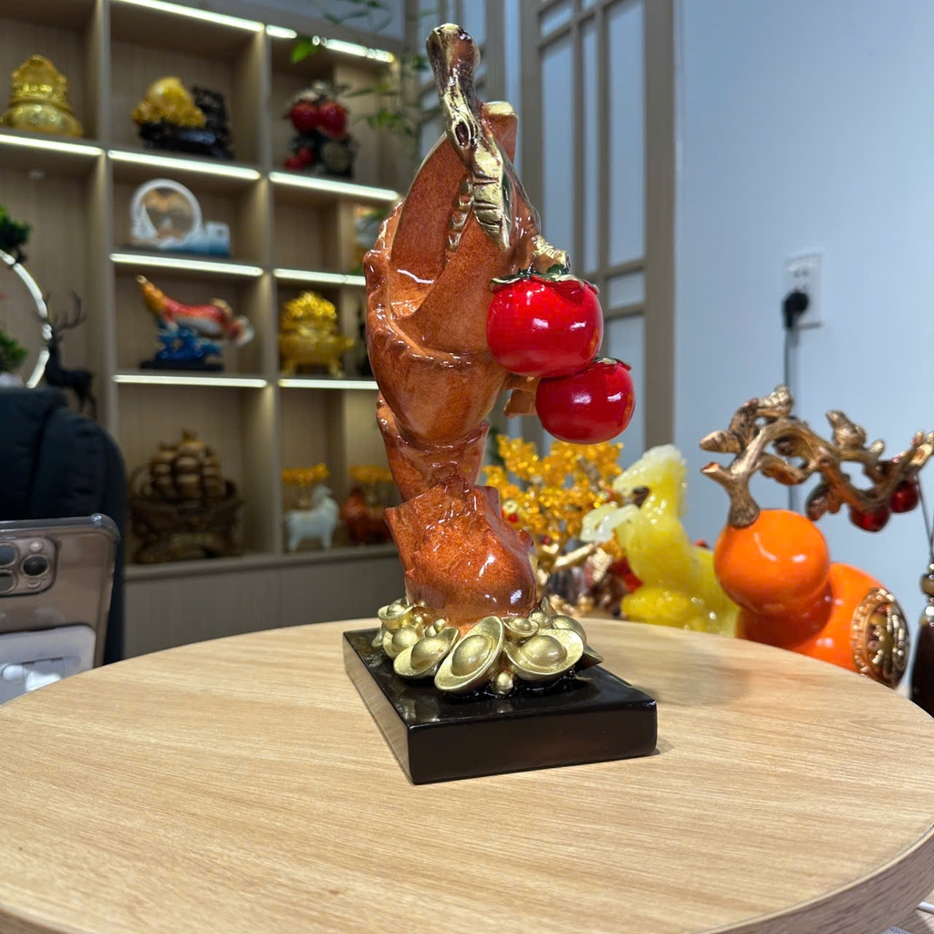 🍅 Hai quả hồng đỏ:Trong phong thủy, quả hồng biểu trưng cho “hồng vận – may mắn, hanh thông”. Hai quả tượng trưng cho song hỷ – gấp đôi tài lộc và niềm vui.