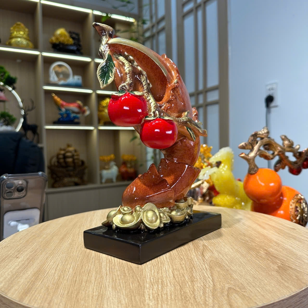 Tượng mang hình ảnh càng cua mạnh mẽ kẹp chặt 2 quả hồng đỏ, chứa đựng nhiều tầng ý nghĩa tốt lành: