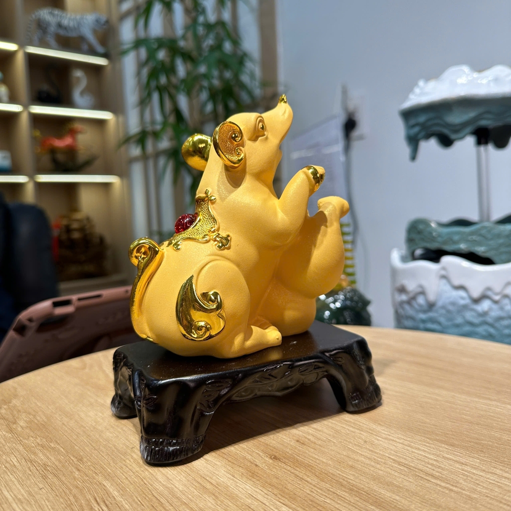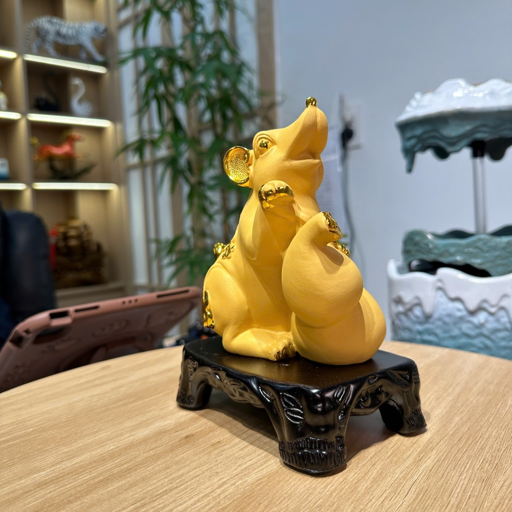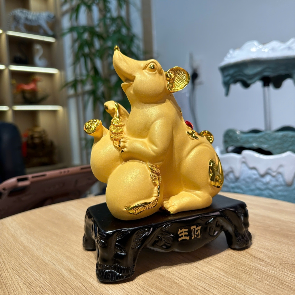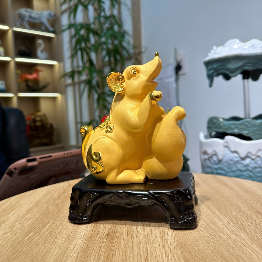 Tượng Chuột Phong Thủy Chiêu Tài Sinh Lộc – Màu Kim Sa Cát Vàng Sang Trọng