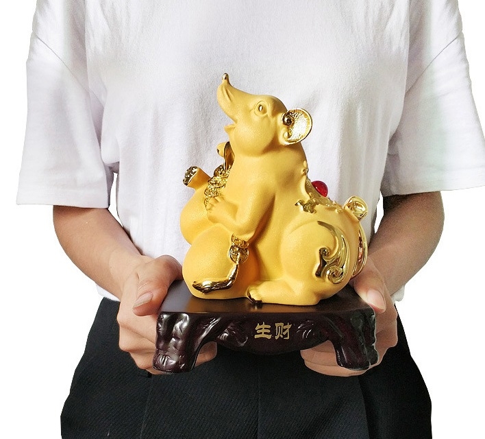 Đặc biệt mẫu chuột ôm vàng – dáng ngẩng đầu tượng trưng cho tiền tài ngày càng đi lên, rất hợp trưng bày bàn làm việc, quầy thu ngân, cửa hàng kinh doanh.