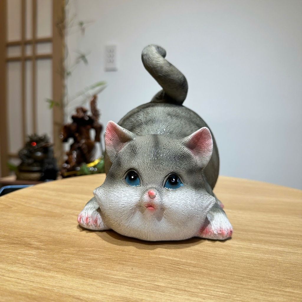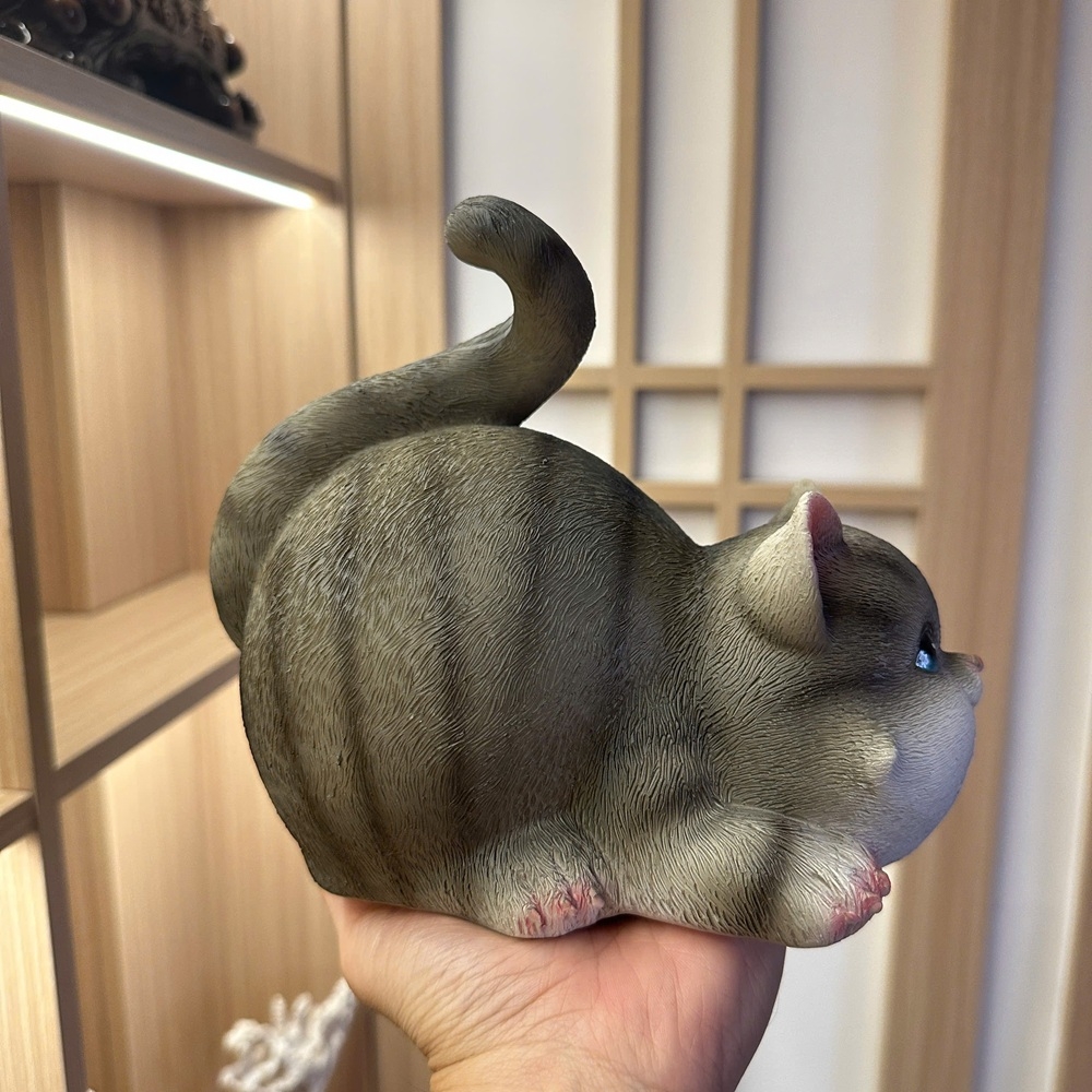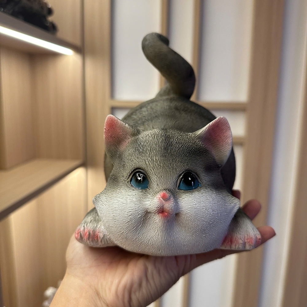 Mèo xám: 13x19x17cm✅ Trọng lượng: ~1kg/con✅ Công dụng: Trang trí nhà cửa, bàn làm việc, kệ tủ, quà tặng