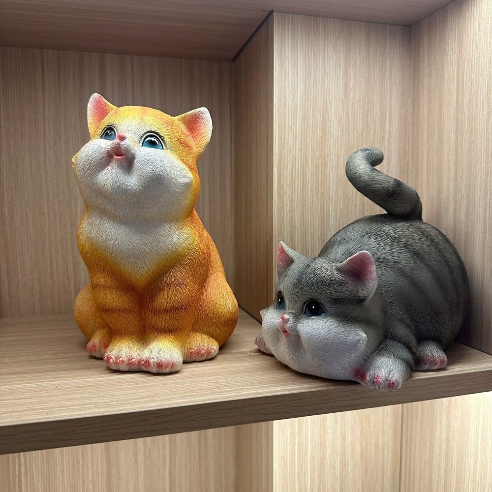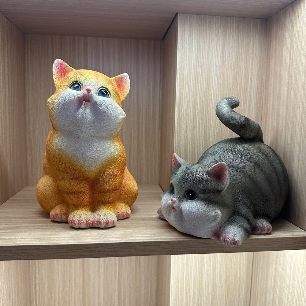Tượng con mèo vàng mèo xám bột đá đúc trang trí, quà tặng tuổi mão decor tân gia khai trương sinh nhật