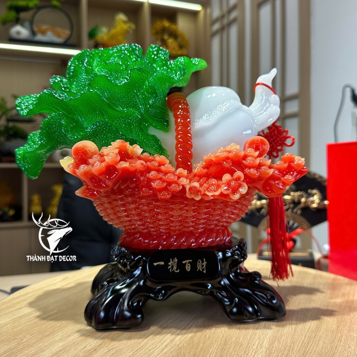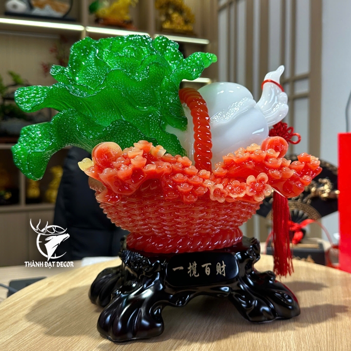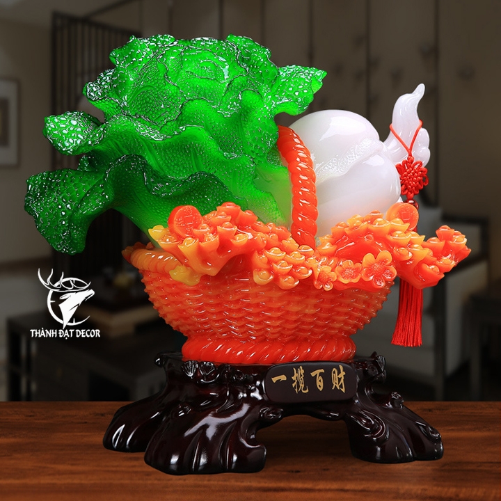 Tượng giỏ bắp cải hồ lô phong thủy 28x16x28cm Quà Tặng Decor Tân Gia Khai Trương Sinh Nhật