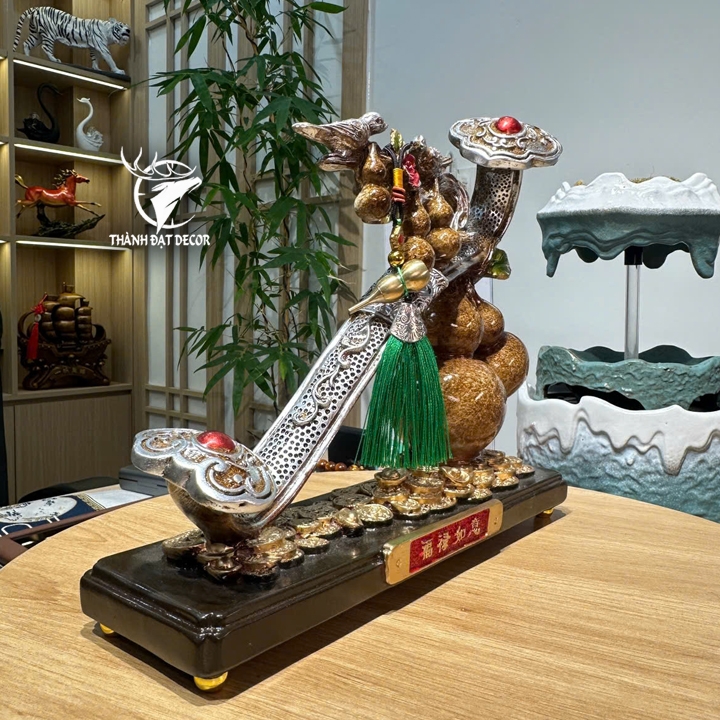 Trượng hồ lô như ý phong thủy bột đá cao cấp 30x9x25cm decor hút tài lộc