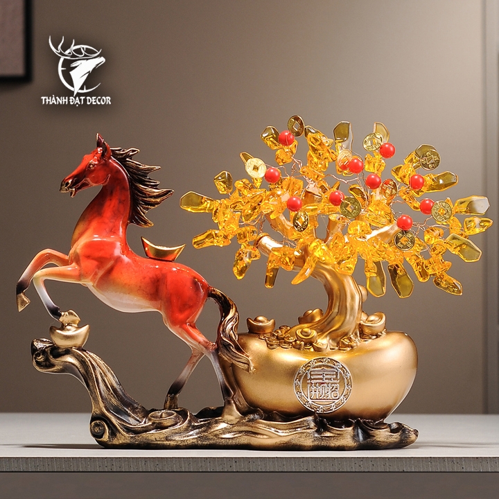 Tượng Ngựa Kéo Cây Tiền Vàng Phong Thủy Trang Trí Nhà Cửa Quà Tặng Tân Gia Khai Trương Sinh Nhật