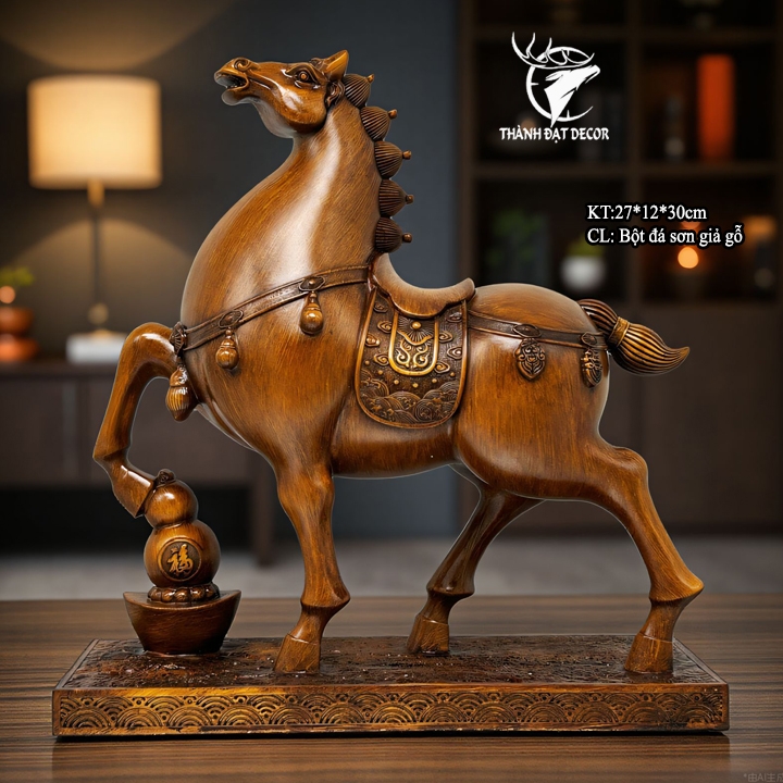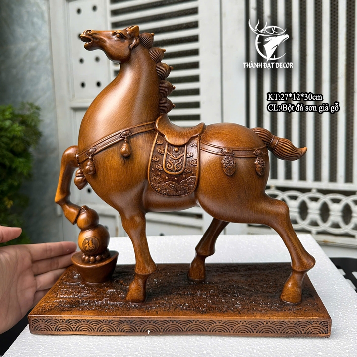 Tượng Ngựa Mã Đáo Thành Công Bột Đá Sơn Giả Gỗ – Trang Trí Phong Thủy Quà Tặng Tân Gia Khai Trương Sinh Nhật