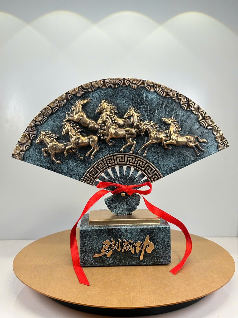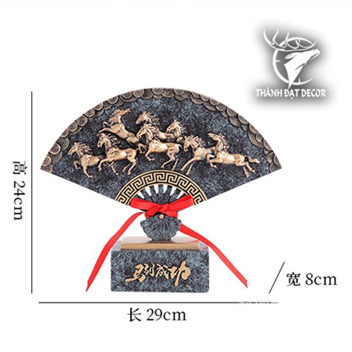 ượng mã đáo thành công, quạt mã đáo thành công, tượng quạt phong thủy, tượng phong thủy bát mã, tượng trang trí phòng khách, đồ decor phong thủy, quà tặng khai trương, quà tặng tân gia, tượng bột đá phong thủy, tượng ngựa mã đáo