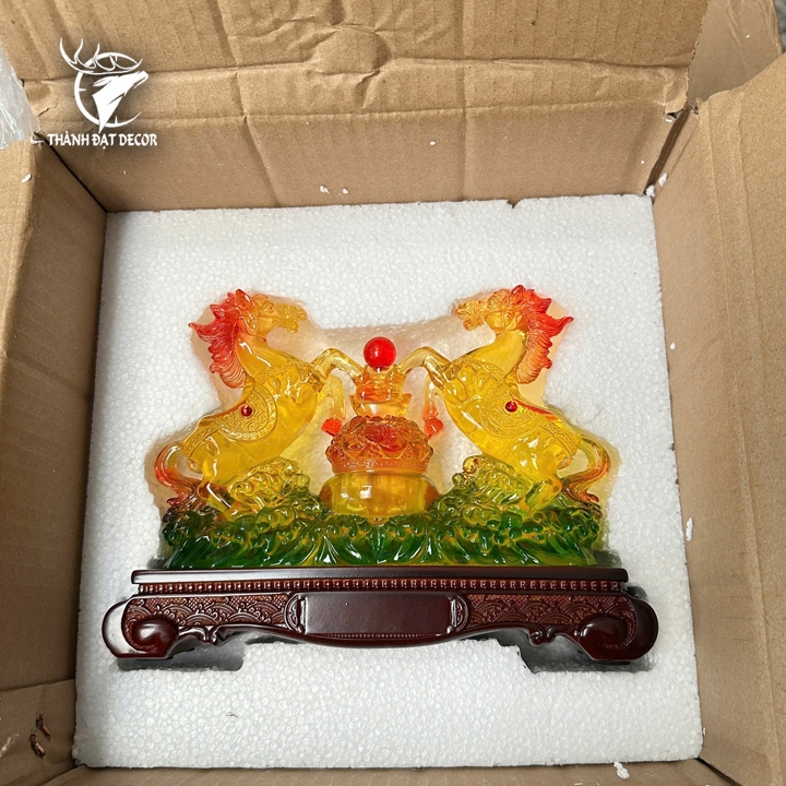 Tượng Phong Thủy Song Mã Tụ Bảo Lưu Ly – Biểu Tượng Thành Công, Chiêu Tài Đón Lộc Decor Quà Tặng Tân Gia Khai Trương