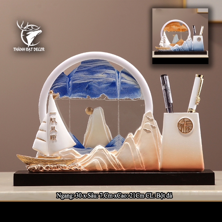 Tượng Thuyền Thuận Buồm Xuôi Gió Kèm Hộp Đựng Bút, Tranh Cát Decor Quà Tặng Tân Gia Khai Trương Sinh Nhật